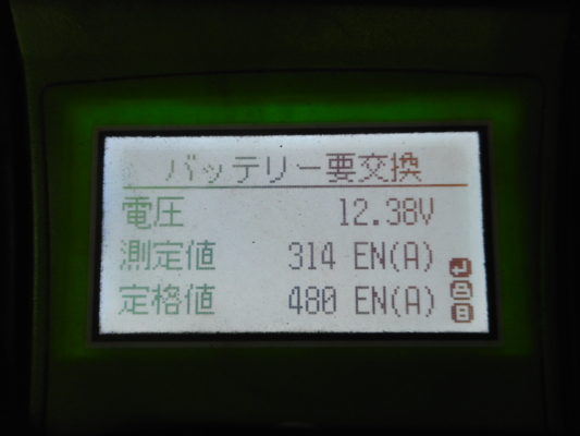 バッテリー状態は点検→性能低下しているので交換しました。