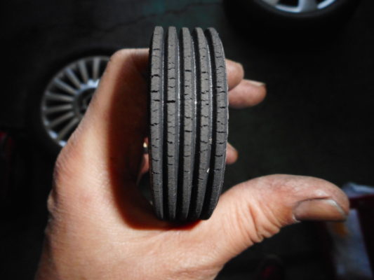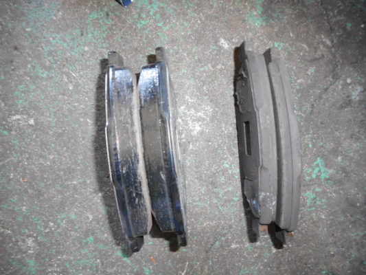 ブレーキパット残量が少ないので交換しました・取り外したパット残量3mm