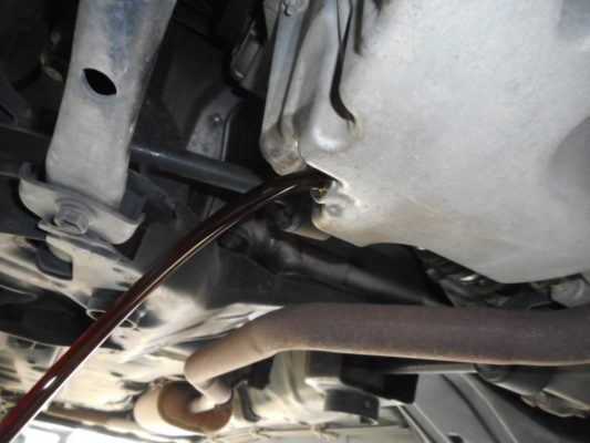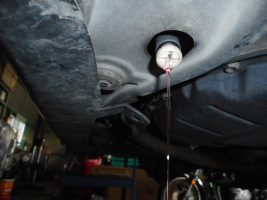 ↑エンジンオイルを排出し、