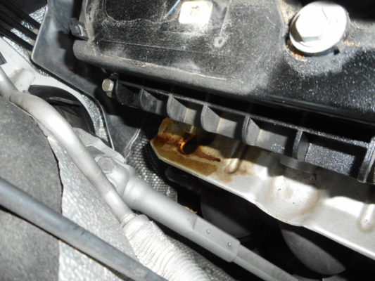 オイル漏れあり→エンジンオイルパンが濡れていますが上から漏れている可能性があるので相談です。