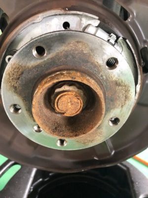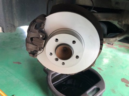 前後パット・ローター交換。オイル漏れは上から順番に直していくことになりました。