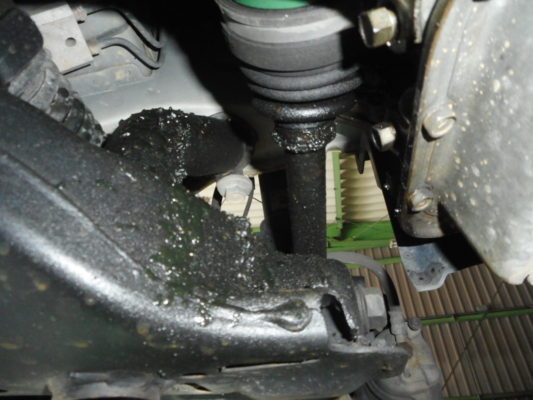 左ドライブシャフトインナーブーツが破れているので交換しました。
