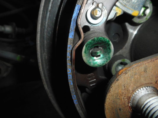 リヤ・ブレーキ点検・ライニング残量は2.4mm 3.3mmです。