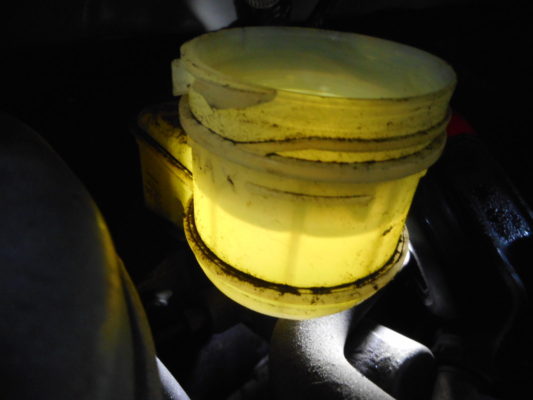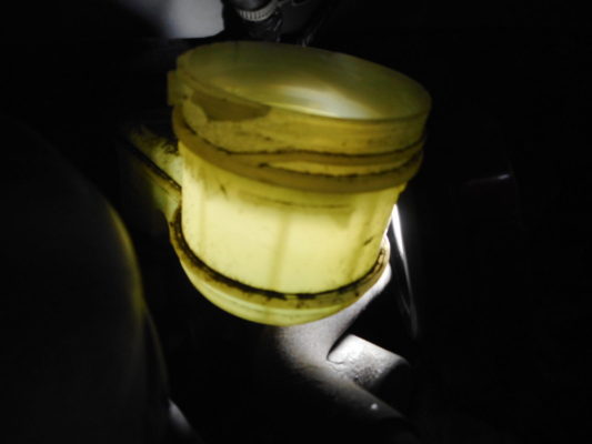 フロント・ブレーキ点検・ブレーキパット残量は7.0mmです。
