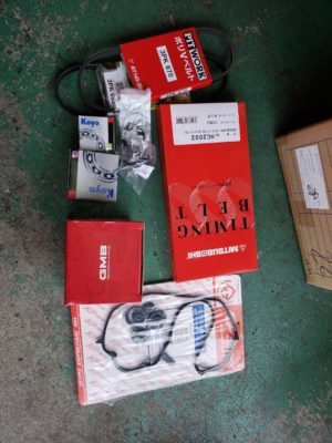 ↑タイミングベルト、ウォーターポンプ、テンショナー等