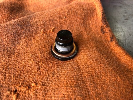 ![]() ドレンボルトのガスケットは交換しないと漏れてくる可能性が高いので交換しています。 |