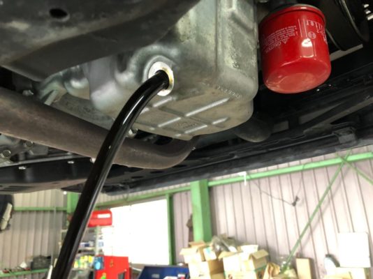 ↑エンジンオイルを排出し、