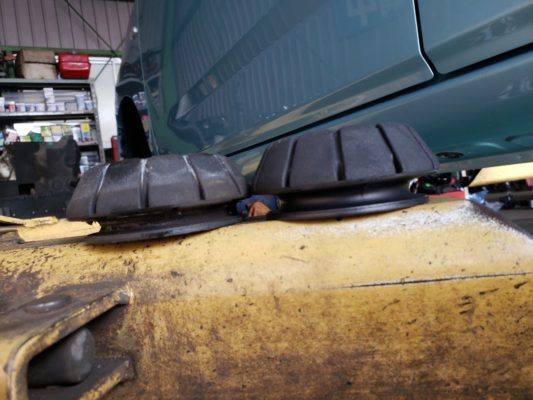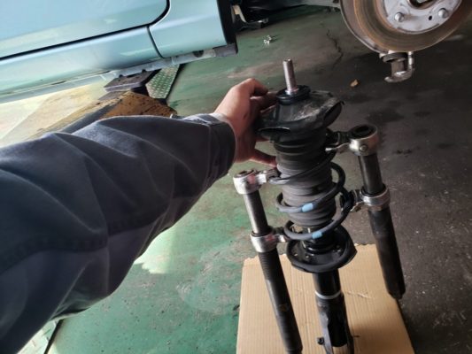点検でショックのアッパーマウントの劣化が原因なので交換しました。