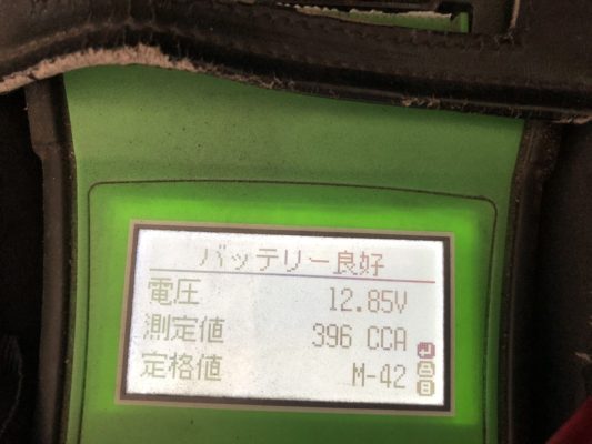バッテリー状態:電圧12.67V 測定値396CCA 充電量100% 良好です。