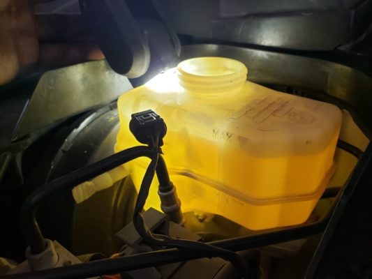 冷却水は水漏れ修理で交換済みなので量チェック → 良好です。