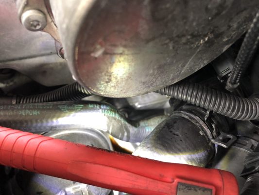 ![]() 2日間 暖機と試乗をして確認すると漏れてきました。 |
