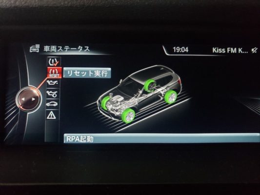 灯火装置点検・バッテリー状態(良好)・タイヤ状態(良好)・空気圧調整・