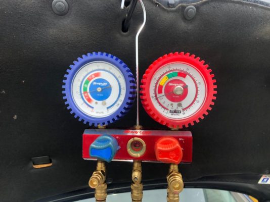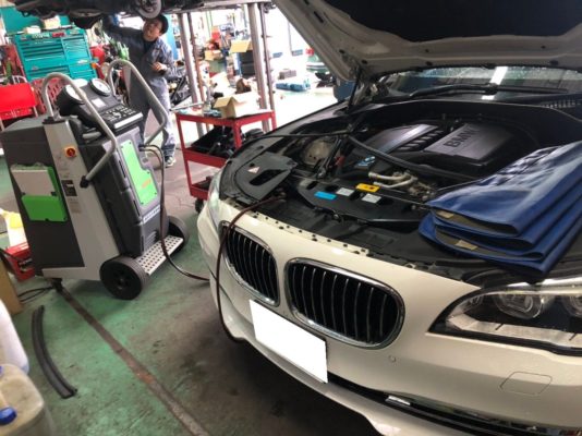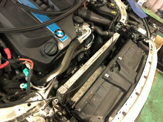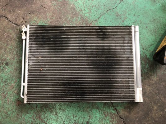 ガス圧を点検で低下を確認、以前入庫時でガス補充で蛍光剤を充填済みなので漏れ箇所を特定→コンデンサーから漏れているので交換することになりました。