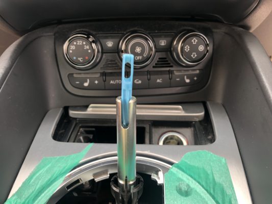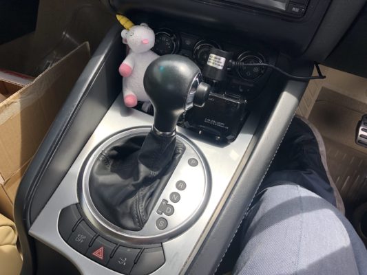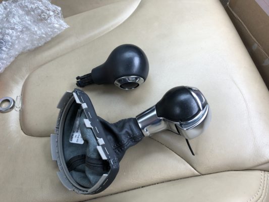 シフトノブは横押し→縦押しに交換です、シフトノブを取り外して加工していきます。