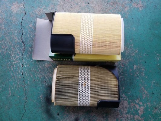↑エアエレメントは、汚れているので交換し、