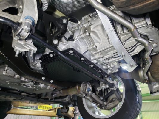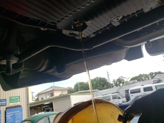 下回りを見ると、ミッションオイルが飛び散っています。