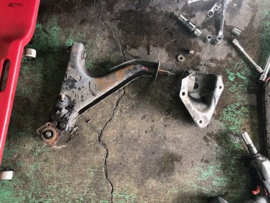 ↑フロントロアアームを外して、