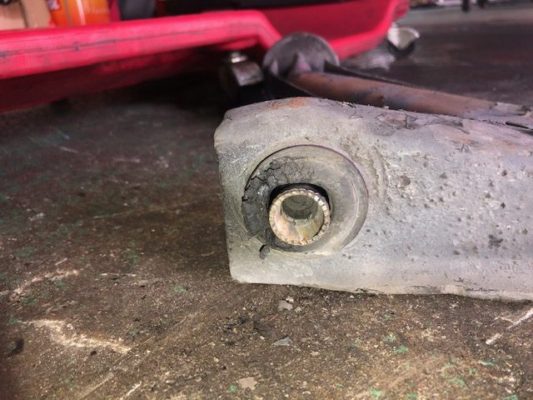 ↑酷いのは前側のブッシュです。