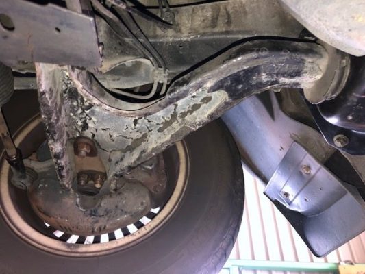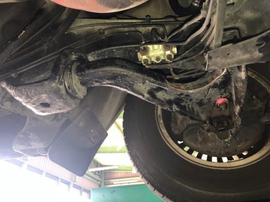 点検すると、ロアアームのブッシュの不具合です。