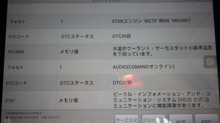 外した部品を元通りに組付け、冷却水を注入し、故障コードが入力されないことを確認しました。
