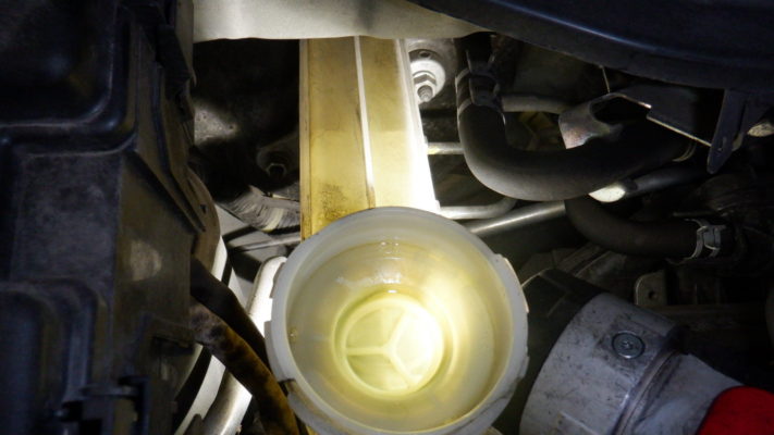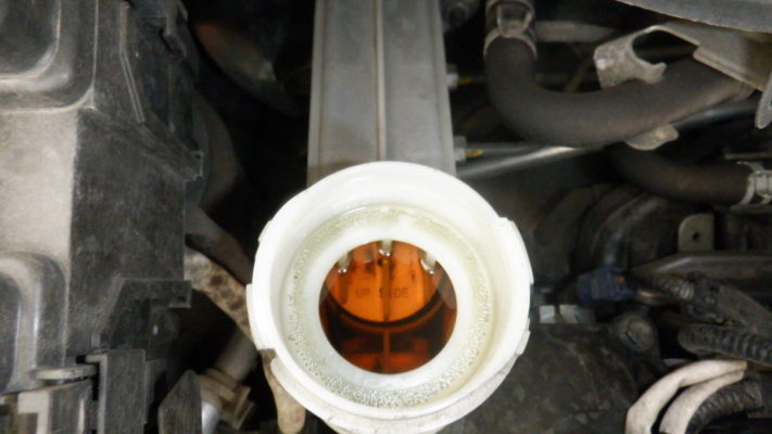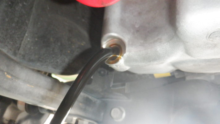↑エンジンオイルを排出し、オイルエレメントも同時に交換。