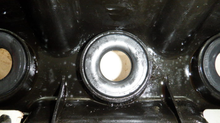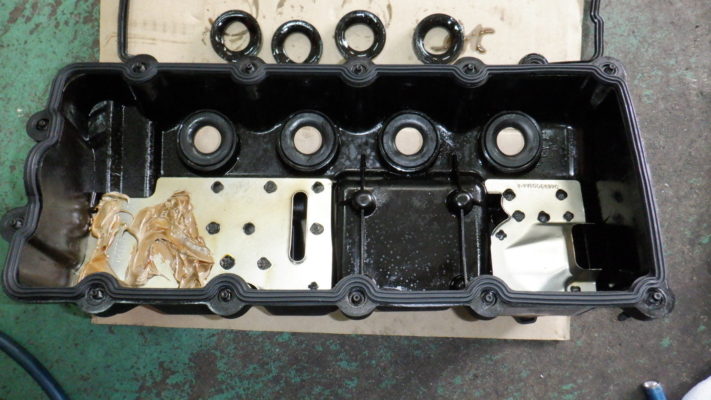 ↑ヘッドカバーのガスケットより、オイルの滲みがありヘッドカバーを取り外し、