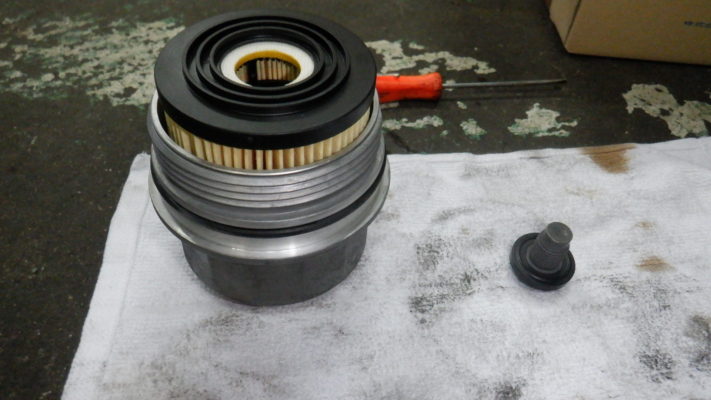 ↑オイルエレメントと、ドレンボルト(ガスケット付き)を同時に交換。