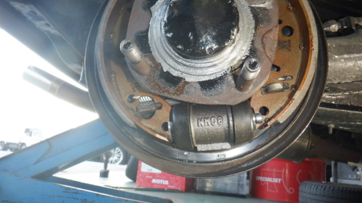 ↑ホイルシリンダーより、ブレーキフルード漏れていました。