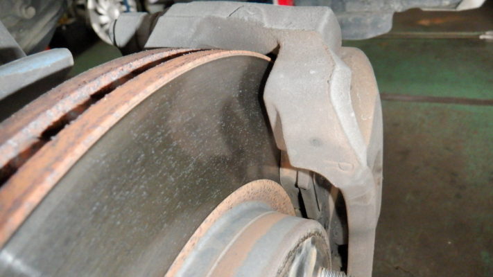 リヤ・ブレーキ点検・清掃・ブレーキパット残量4.5mmです。(交換目安4mm以下です)