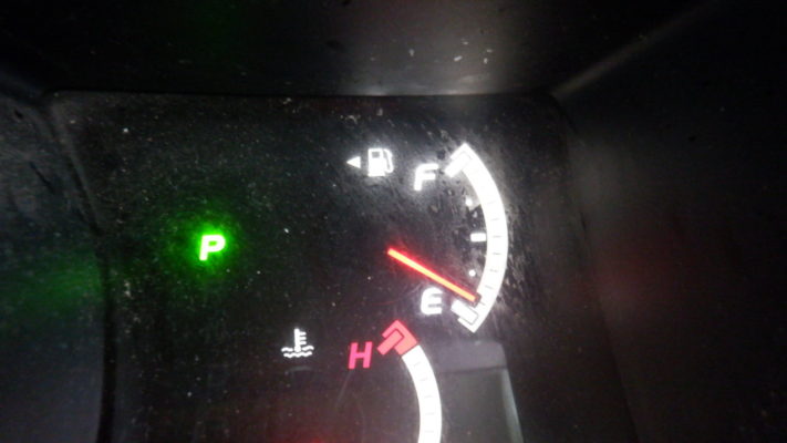 入庫時点ではエンジンはかからない、クランキングで燃料ホースから燃料が出てこないメーターでは燃料は入っていると表示されているが燃料を補充するとホースから燃料は出てくるので燃料切れがエンストの原因ですがメーターでは燃料が入っていると表示されているので、燃料ゲージ不具合の可能性があります。