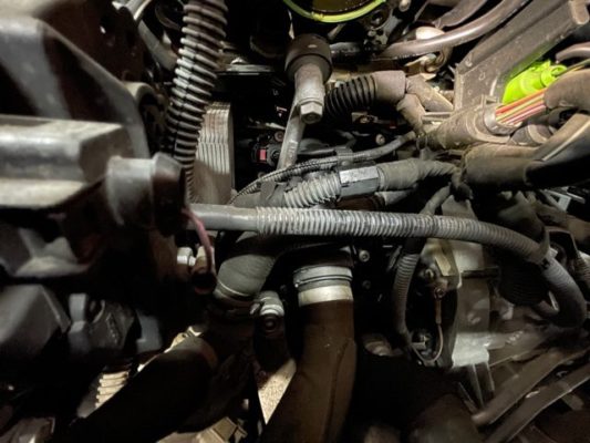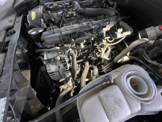 ↑取り外すのもかなり狭い位置にある、ウォーターポンプを交換します。