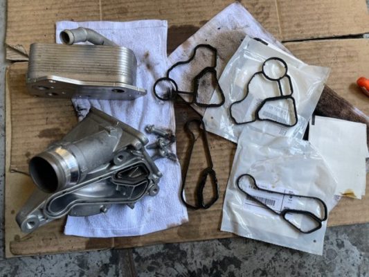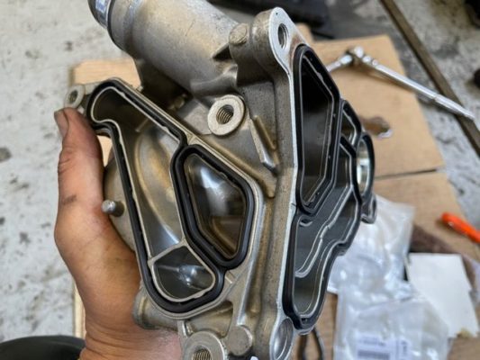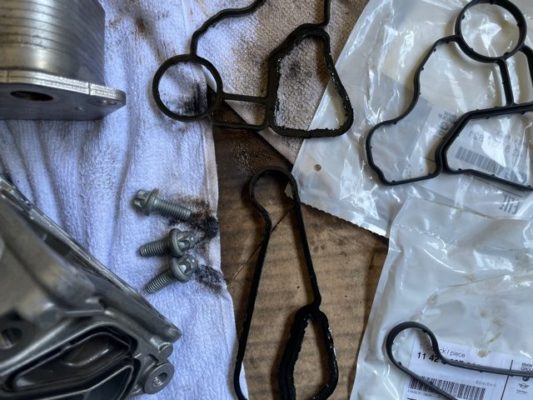 ↑オイルエレメントハウジングガスケットからの漏れため交換していきます。
