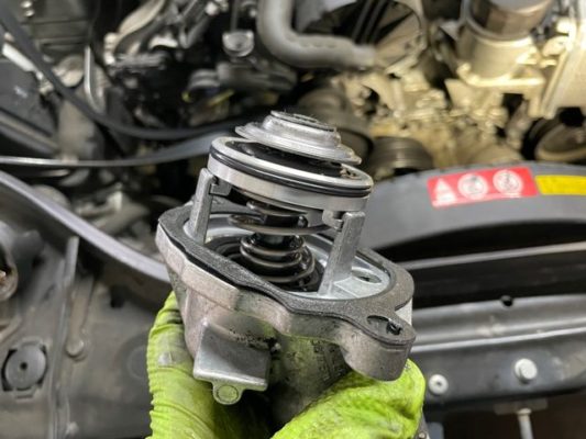 ↑サーモスタットのハウジングガスケットと、サーモのガスケットを同時に交換。