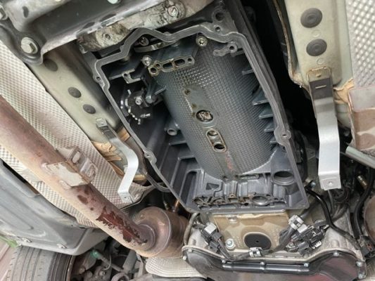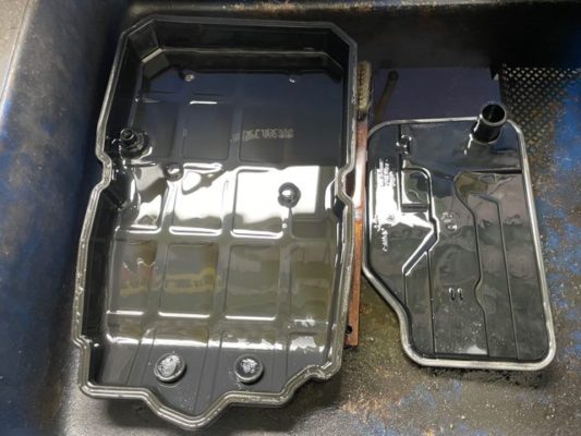 ↑外したオートマのオイルパンと、フィルターです。 結構汚れていました。
