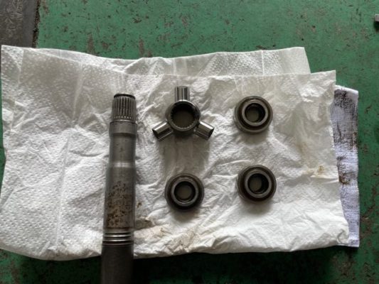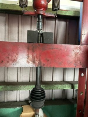 ↑ドライブシャフトを抜いて作業します。