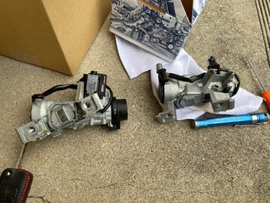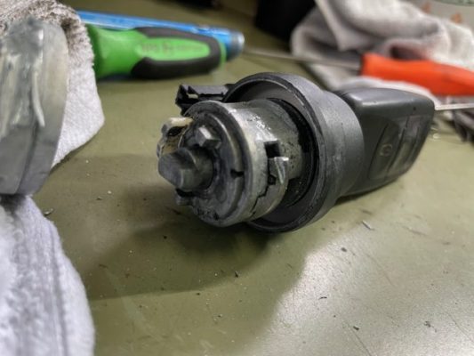 ↑取れました。 キーシリンダーを移植し復元作業で完成。