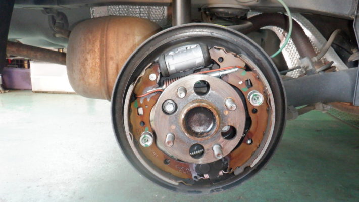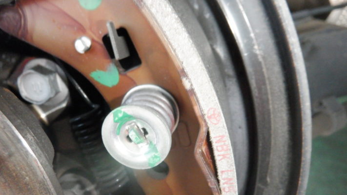 リヤ・ブレーキ点検・清掃・ライニング残量は4.5mm 4.4mmです。