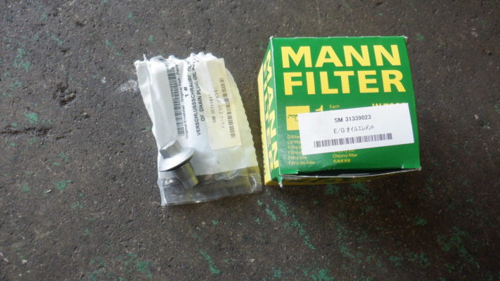↑新しいドレンボルト(P/K付)とフィルター