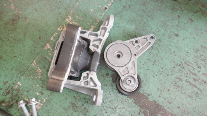 エンジンマウントとテンショナーを取り外して作業しました。