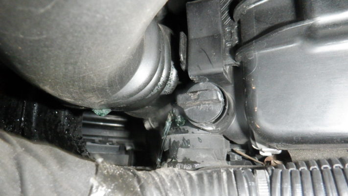 写真ではわかりにくいですが、ヘッドカバーからにじんでいました。