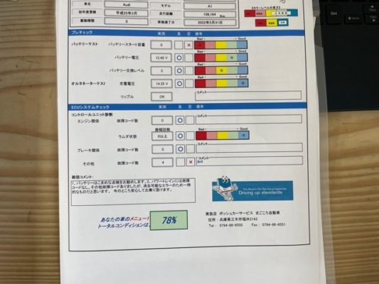 お車の状態を把握する事で、今後のメンテナンスが見えて来ます。