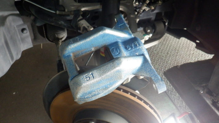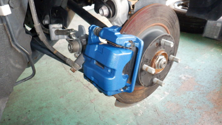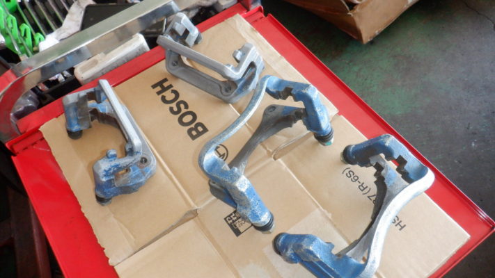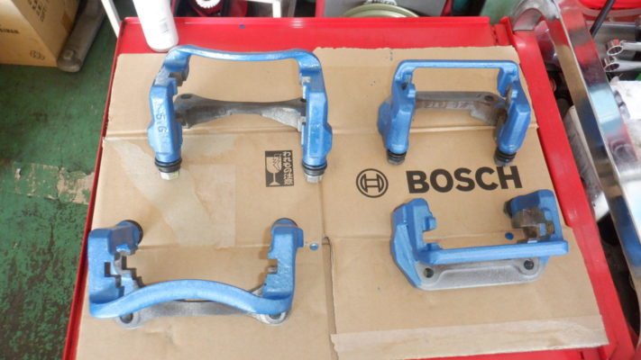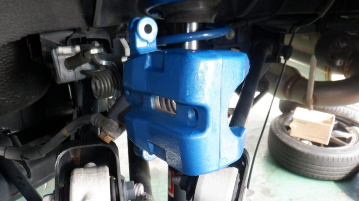 足回り洗浄・リフトアップしてキャリパー周りを清掃して塗装していきます。