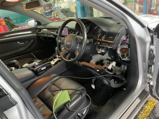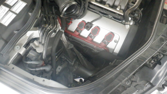 アウディA8のオイルフィルターは、エアクリーナーを取り外さないとアクセスできない場所についています。
