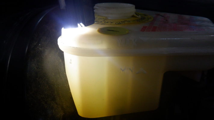 レベルゲージにスラッジが付着していたためフラッシングを行いました。