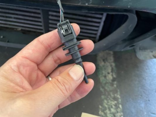 ↑外気温度センサーを点検するため、