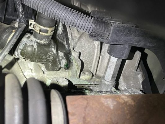 ↑ウォーターポンプの裏側カバーから漏れ確認の為、パーツ注文。