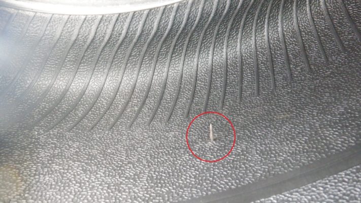 右後ろのタイヤだけ空気の減りが早いとお伺いしたので、パンク点検を行いました。
