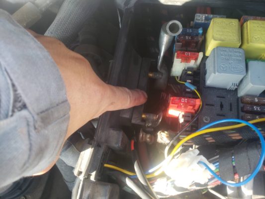 ↑切れていたヒューズ。 新しいヒューズを取り直し
