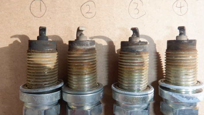 ↑プラグは、かなり摩耗しており、まずは4本交換します。