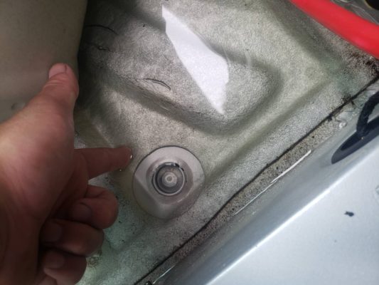点検すると、運転席ドアのインシュレーターから室内に侵入していました。